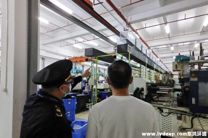 執(zhí)法人員現(xiàn)場檢查發(fā)現(xiàn),該企業(yè)的注塑成型工序所在的注塑車間未密閉,注塑車間雖然設(shè)有廢氣收集管道,但是管道沒有設(shè)置鼓風機,也沒有連接配套的廢氣處理設(shè)備,注塑機沒有配套集氣罩,注塑廢氣未經(jīng)處理通過車間門窗直接排至外環(huán)境。上述情況與該企業(yè)《驗收意見》中“注塑成型設(shè)在密閉的車間內(nèi),在廢氣產(chǎn)污節(jié)點設(shè)置集氣罩抽風收集后,收集部分經(jīng)1套‘水噴淋+干式過濾器+二級活性炭吸附裝置’,后進行二次處理設(shè)施升級改造為‘水噴淋+旋流塔+活性炭濃縮+催化燃燒’處理后經(jīng)30m高排氣筒高空排放”的記載不一致。